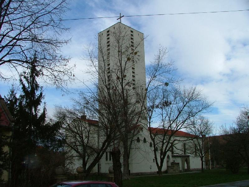 Albertfalva a ráckevei koronauradalom promontori kirendeltségéhez tartozott, amikor a XIX. sz. elején a promontori (budafoki) zsellértelep északi irányba való bôvítését határozták el és 50 házhelyet jelöltek ki az új településnek. E területet Mária Terézia ajándékozta leányának, Krisztina hercegnônek nászajándékul, aki Albert, szász-tesseni herceghez ment feleségül. Az új birtokosról nevezték Sachsenfeldnek, illetve nagyon rövid idô múlva kizárólag csak Albertfalvának. A kialakuló, többségében német iparosok lakta település 1828-ban elszakadt Promontortól és önállóvá vált. Az 1838-as nagy dunai árvíz szinte teljesen elpusztította Albertfalvát, de rövid idô múlva ismét felépült. Ipari fejlôdése a XX. sz. elejétôl felgyorsult (gumigyár, repülôgépgyár, szappangyár, ipari üzemek stb.). A kertes, kis házas, több részes település 1950-tôl Budapest XI. kerületének része. Az 1970-es évek kezdetén jelentôs részét lebontották és új, tízemeletes panel lakóházakat építettek. Bár az anyakönyvezés már 1823-tól önálló anyakönyvben történt, az elsô szentmise csak 1922. december 26-án volt a régi iskolában. Az új iskola felépítésével (1929) állandó kápolnát alakítottak ki. Bergendy János volt a plébánia elsô szervezô lelkésze, aki ezt a munkát csak elkezdhette, mert 1933-ban Székesfehérvárra helyezték (1945. március 22-én orosz katonák lôtték agyon a székesfehérvári püspökségen). A templom építése és a plébániai élet teljes megszervezése Doroszlai Béla nevéhez fûzôdik, aki 1955-ig volt Albertfalva plébánosa. 1941. október 5-én történt a Szent Mihály fôangyal tiszteletére épített templom felszentelése, melyet Kismarthy Lechner Jenô és fia, ifj. Lechner Jenô tervezett és Felsôszöllôsi Szöllôssy Imre vezetésével történt a felépítése. 1969-ben készült el Bardon Alfréd tervei szerint a szentély átépítése. 1988–91 között a templom teljes felújítására került sor. Az akkori liturgia és a modern építészeti igényeknek megfelelô csúcsíves alakú vasbeton keretek alkotják a templom fôvázát, falai téglából készültek és hullámpalával fedték. Alapterülete 600 m2. Belsô mennyezete a csúcsívet követô fából készült lépcsôs gerendák. Szent Mihály fából készült szobrát Búza Barna készítette. A szentély jobb oldalán lévô hatalmas színes üvegablak az 1938. évi Eucharisztikus Világkongresszus emlékére készült, a többi üvegablak a nyolc boldogság ábrázolása. Az oltár kör alakú, fehér márványból készült. A Mária oltár fölött nyert elhelyezést az elôbb említett kongresszus Magyarok Nagyasszonya képe. A három manuálos, 17 regiszteres orgona építése 1985-ben fejezôdött be. A plébánia 1992. január 31-én alapította az Albertfalvi Don Bosco Katolikus Általános Iskolát, amely az Önkormányzat tulajdonát képezô épületben mûködik. 1995-ben három új tanteremmel bôvült. Tanulóinak létszáma: 458. A plébánia az 1993-as egyházmegyei határrendezés során került a székesfehérvári egyházmegyétôl az esztergom-budapesti fôegyházmegyéhez.