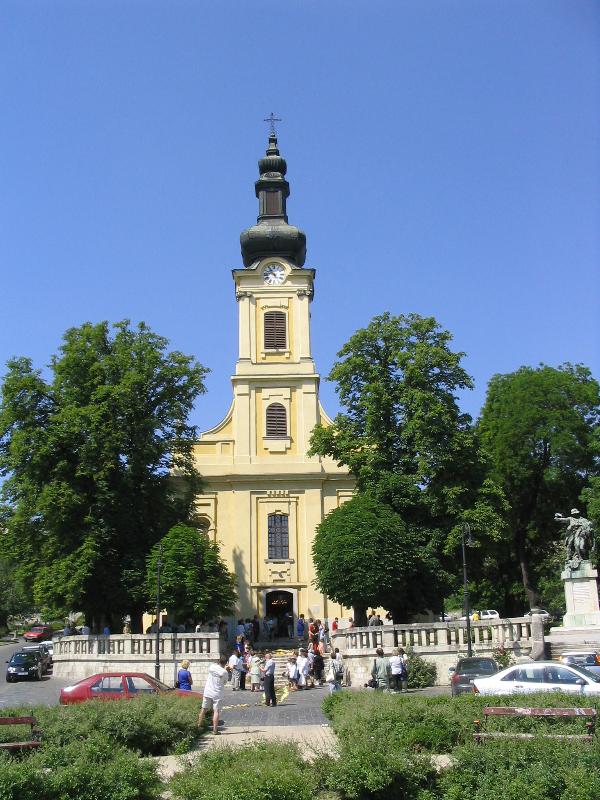 A török idõk után telepesekkel benépesített egykori Promontórium 1739-ben lett önálló község, a budai kapucinusok látták el 1726–1788 között. Az 1742. évi pestisjárvány után fogadalmi hagyatékból épült Péter és Pál kápolna hamarosan kicsinek bizonyult. Az új templom alapkövét 1753-ban tették le, a kegyúr, Mária Terézia jelentôs anyagiakkal támogatta. 1755. október 6-án szentelte fel Padányi Bíró Márton veszprémi püspök Szent Lipót és Promontor védôszentjei, Szent Sebestyén és Szent Vendel tiszteletére. Mire a berendezéssel elkészültek, a templom újra kicsi lett. 1792-re teljesen átépítették, ezúttal Albert, szász-tesseni herceg anyagi támogatásával és sok-sok közmunkával. Mai végleges formáját csak 1896-ban nyerte el, amikor Pauer János székesfehérvári püspök szentelte föl az addig csak megáldott templomot. Sem tervezôjét, sem kivitelezôjét nem ismerjük. Barokk templom, egyetlen homlokzati középtoronnyal, copf homlokzattal, a torony tetején középkori kovácsoltvas kereszttel. A templom egyhajós, síkmennyezetes, két oldalkápolnával. A vörös márvány fôoltár és a Szent Lipótot ábrázoló oltárkép (valószínûleg Bartholomeus Altomonte festménye) Mária Terézia ajándéka. A szószék rokokó, eredete ismeretlen. Az északi oldalkápolna Pieta szoborcsoportját Lechner Erzsébet a budai trinitáriusok templomából vásárolta meg a rend feloszlatásakor a templom számára. A Segítô Szûz Mária oltár, a hajó szentély felôli bal oldalán, Andreas Kentzel pesti polgár ajándéka. 1991-ben itt helyezték el a II. világháború magyar áldozatainak emlékére az elsô magyar honvédereklyét. Minden esztendôben, halottak napja alkalmából országos megemlékezés színhelye. A templom elsô orgonáját 1764-ben kapta, a jelenlegit 1904-ben a Rieger cég készítette. A templom teljes külsô és belsô felújítására 1994–97 között került sor. A templom az 1997. évi LIV. törvény alapján 15 809. törzsszám alatt II. kategóriába sorolt mûemlék. A plébániához tartozik az 1831-ben épült Péter-Pál kápolna, mely 15 815. törzsszám alatt a mûemléki nyilvántartásban szerepel. A plébánia az 1993-as egyházmegyei határrendezés során került a székesfehérvári egyházmegyétôl az esztergom-budapesti fôegyházmegyéhez. Alapterülete: 550 m2, az istentiszteleti tér: 330 m2.