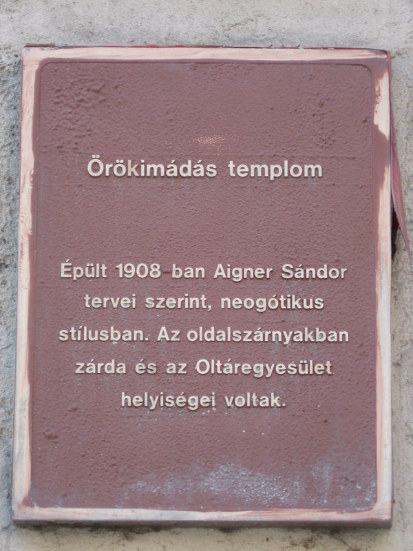 1901-ben telepednek le Budapesten a belga eredetű Maria Repararix rend nõvérei és már ideiglenes otthonukban megkezdik az Oltáriszentség állandó imádását. 1904-ben az egyesület igazgatójának, Kanter Károlynak buzgólkodására lehetõvé válik az Örökimádás-templom alapkövének letétele, amely 1908-ra Aigner Sándor terve szerint (650 m2) készül el a zárdával és az Oltáregyleti székházzal együtt. Felszentelését 1908. szept. 8-án Kohl Medárd püspök végzi.