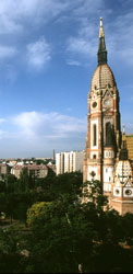 Kőér vagy Kövérd néven szerepel a XIII. sz.–ban az a föld, amely Pesttől keletre a Rákos-patak déli partján terül el és részben a mai Kőbányával azonosítható. A szétszórtan élô híveket 1777-tôl az ekkor alakult józsefvárosi plébánia gondozza. Misézôhelyül használják az Óhegyi (ma Kápolna téri) kis, barokk, műemlék kápolnát, amelyet pestisjárvánnyal kapcsolatban 1740-ben Conti Lipót építtetett fogadalomból. (Ez a kápolna ma a görögkatolikus bazilita szerzetesek gondozásában van.) A XIX. sz. elejétôl benépesülő területen 1869-ben expositura létesül, majd 1881-ben a józsefvárosi plébániából leválasztva plébánia alakul. A templom építését Lechner Ödön terve szerint 1894-ben kezdik meg. Felszentelése 1900. június 27-én, védőszentjének, Szent Lászlónak ünnepén történik. A páratlan megjelenésű, mûemlék templom (1500 m2) belső díszítése és berendezése Tandor Ottó terve szerint készült. A templom háromhajós, bazilikás rendszerű. Lechner franciaországi román kori és gótikus vonásokat vegyített reneszánsz, barokk, perzsa és magyar népi elemekkel, mesterien magyarossá formálva az épületet. A főhajó hossza 50 méter, belvilága 23 méter, a templom tornya (Budapest legmagasabb tornya) 83 méter. A templomnak különleges jellegét még az adja, hogy kívülbelül a Pécsi Zsolnai Gyár termékei díszítik: mázas tégla, tetőcserép, díszek, szobrok, attikák, oltárok, szószék, keresztelőkút és szenteltvíztartó.