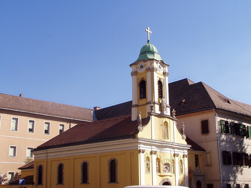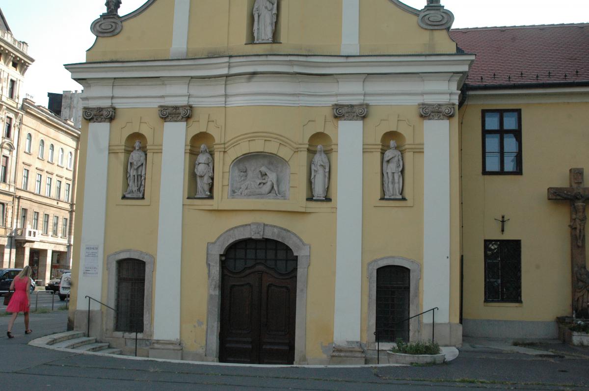 Az épület őskora az idők homályába vész. Az alapokból arra lehet következtetni, hogy már a IV. században állt itt egy kis temetőkápolna. Budapest 1945-os ostroma után a kápolna romjainak eltakarítása kózben a szentély alatt egy "háromkarélyos kamra" maradványaira bukkantak. A CELLA TRICHORA ez a latin neve az ilyen elrendezésű ókeresztény temetői kápolnáknak - négyzetes, kisméretű középteret három oldalról, ív alakban épített falak határolják. Így az alaprajz egy lóherére emlékeztet. A negyedik ív helyén a bejárat van. Magyarországon eddig Szombathelyen, Pécsett és Óbudán (Raktár utca) tártak fel ilyen őskeresztény temetőkápolnákat. Ezek - a régészek szerint - a IV. században épülhettek. A római kori eredetet valószínűsíti, hogy az ókori "pestelőtti" városka helyén római tábor (castrum) volt, s több lelet szerint is ezen a tájékon lehetett a temetőjük. Nagyon valószínű, hogy a katonák és családjuk körében egyre többen lévő keresztények itt is építettek egy kis kápolnát az akkoriban szokásos "trichora" formában. Ez a hármas elrendezés ugyanis a Szentháromságot jelképezhette az ókeresztény hívők számára. Míg azonban az ókeresztény illetve a római kori eredet - komoly feltárás hiányában - egyelőre csak fikció, a megtalált kövek tanúsága szerint az az építmény, amelynek romjaira a későbbi, Szent Rókusnak és Szent Rozáliának szentelt kápolnát emelték, a X-XI. században épülhetett. Nincs adat róla, hogy ez a nyilván egyházi célokat szolgáló épület milyen volt, és arról sem, hogy falaiból mennyi élte túl a középkor sötét, járványoktól sújtott évszázada. Tény, hogy amikor az időben az 1711. évhez érkezünk "Pest város tanácsa az ismételten pusztító pestisjárvány megszüntetése végett életbe lépett óvintézkedései között, mivel a járványban Isten büntetését vélte fölismerni a város lakóinak bűneiért, Istennel engesztelő szószónokul és védőszentül Szent Rókust és Szent Rozáliát választotta, végül az evangéliumra fogadkozva megígérte, hogy tiszteletükre kápolnát emeltet...". És a kápolna még abban az évben fel is épült. Kibővítésére az 1739-40-es évek nagy pestisjárványa után került sor, amely elkerülte ugyan Pest városát, mégis a rettegő, halálfélelemben élő lakosok Istennek és a két védőszentnek hálát adva, hogy megoltalmazta őket, elhatározták a kápolna megnagyobbítását mostani méretére. 1741-ben, a bővítés megindításakor kezdeményezte Preymeyr György a remeteség bevezetését. A városi tanács 1746-ban remetelakot építtetett a szentély hátsó falához, azzal a feltétellel, hogy a remetének kötelessége legyen a környék facsemetéinek ápolása. A remeteséget az egyházhatóság 1798-ban szüntette meg. Az utolsó Rókus-kápolnai remete, András, 1806-ban hunyt el, a szerviták kriptájába temették. 1751 és 1765 között toronnyal és a homlokzatot díszítő szent szobrokkal gazdagodott a kápolna. Állandó központja lett az évenkénti ájtatosságoknak és körmeneteknek. A szentbeszédeket jeles egyházi szónokok tartották. A közkórház építésekor, 1797-ben, a kápolnát felújították, kialakították a torony sisakjának végleges formáját, a helytartótanács két harangot adományozott. A bejárat fölé zenekarzat épült.