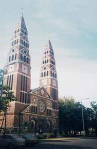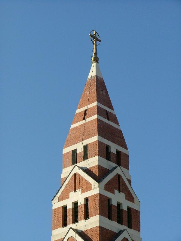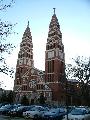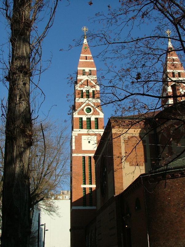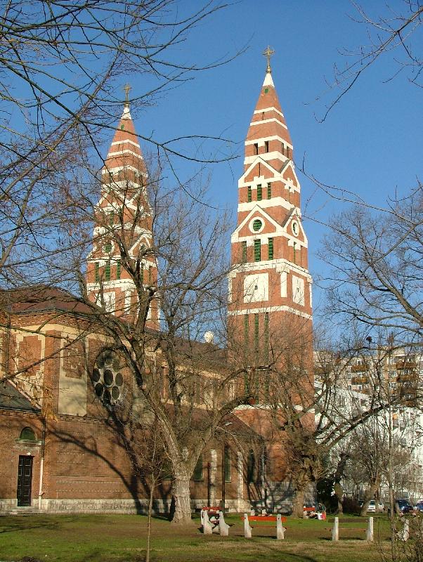 Angyalföldön, a régi Váci út külső részén, a Tripolisznak nevezett városrészben (a Terézvárosi plébánia területén) 1917-ben alakul meg a Hóvirág Kisegítő Kápolna Egyesület, és az itt élő hívek számára a karmelita atyák a Tomori úti iskola két tornatermében végzik vasár- és ünnepnap a szentmiséket. Egyházközséget szerveznek 1923-ban. Ugyanebben az évben a fővárosi tanügyi hatóság véglegesen átengedi a tornatermeket kápolnai célra. Az Érseki Főhatóság Mester Jenőt 1923. december 1-jén helyi lelkésznek nevezi ki. Foerk Ernő – aki a szegedi dóm építésze is – tervei szerint 1929-ben kezdik el a templom (900 m2) építését, a Budapest-Székesfőváros által nyújtott támogatásból és a hívek adományaiból. A kivitelező a Paulheim és Weninger cég. A neoromán stílusú, kéttornyú, latinkereszt alaprajzú, bazilikás elrendezésű templomot 1930. szeptember 21-én szenteli fel Serédi Jusztinián bíboros, hercegprímás. 1933-ban emelik plébániai rangra a lelkészséget. 1940 elején elkészül az egyházközség kultúrháza, ugyanezen év szeptemberében pedig, a plébánia épülete, Dr. Fábián Gáspár terve alapján. A templom üvegablakain a legnagyobb magyar szenteket láthatóak, két mellékoltárát Jézus Szíve és Szűz Mária tiszteletére készültek. A szentély freskóján a dicsőségesen uralkodó Jézus Krisztus, a szembemiséző oltár felett a kazettás mennyezeten a Bárány látható. Az orgonakarzat színes üvegablakain történelmi címereink veszik körül a fővárosi címert.