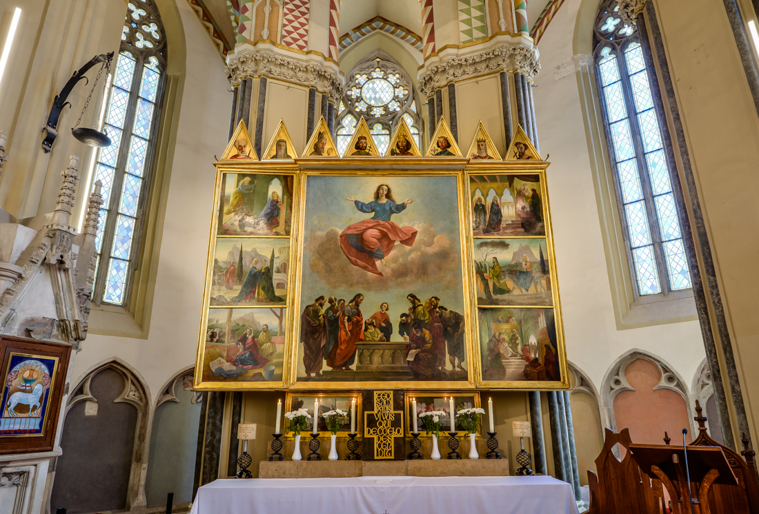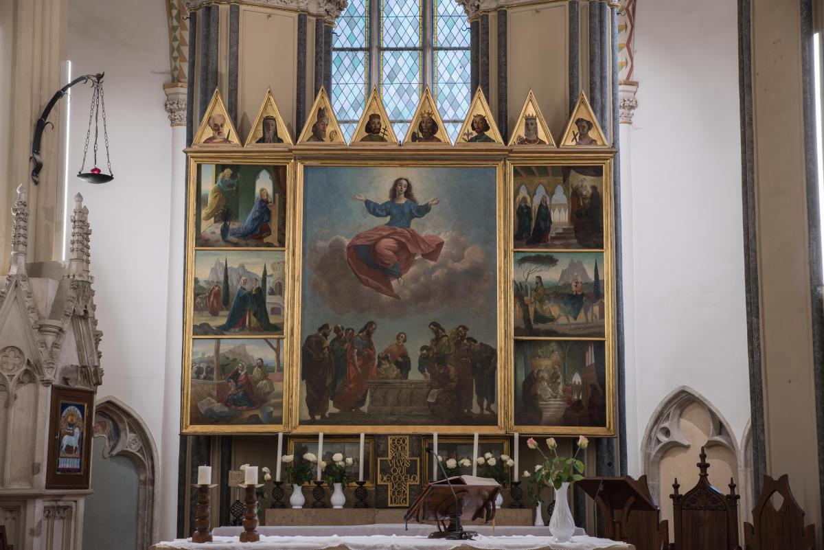 A templom altemplomát a 2014 és 2016 között végzett feltárás és restaurálás során alakították ki. Az altemplomban elhelyezett vitrinekben megtekinthetők a feltárások során előkerült tárgyak, a plébánia régi kottái és misekönyvei, a II. világháborúban megsemmisült Zsolnay oltár töredékei, a 12 apostol aranyozott faszobra, a Nürnbergi Madonna másolati márványszobra, és a Brünni Madonna ikonképe.