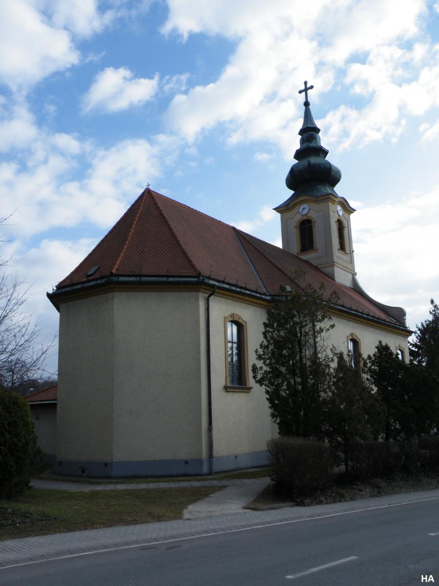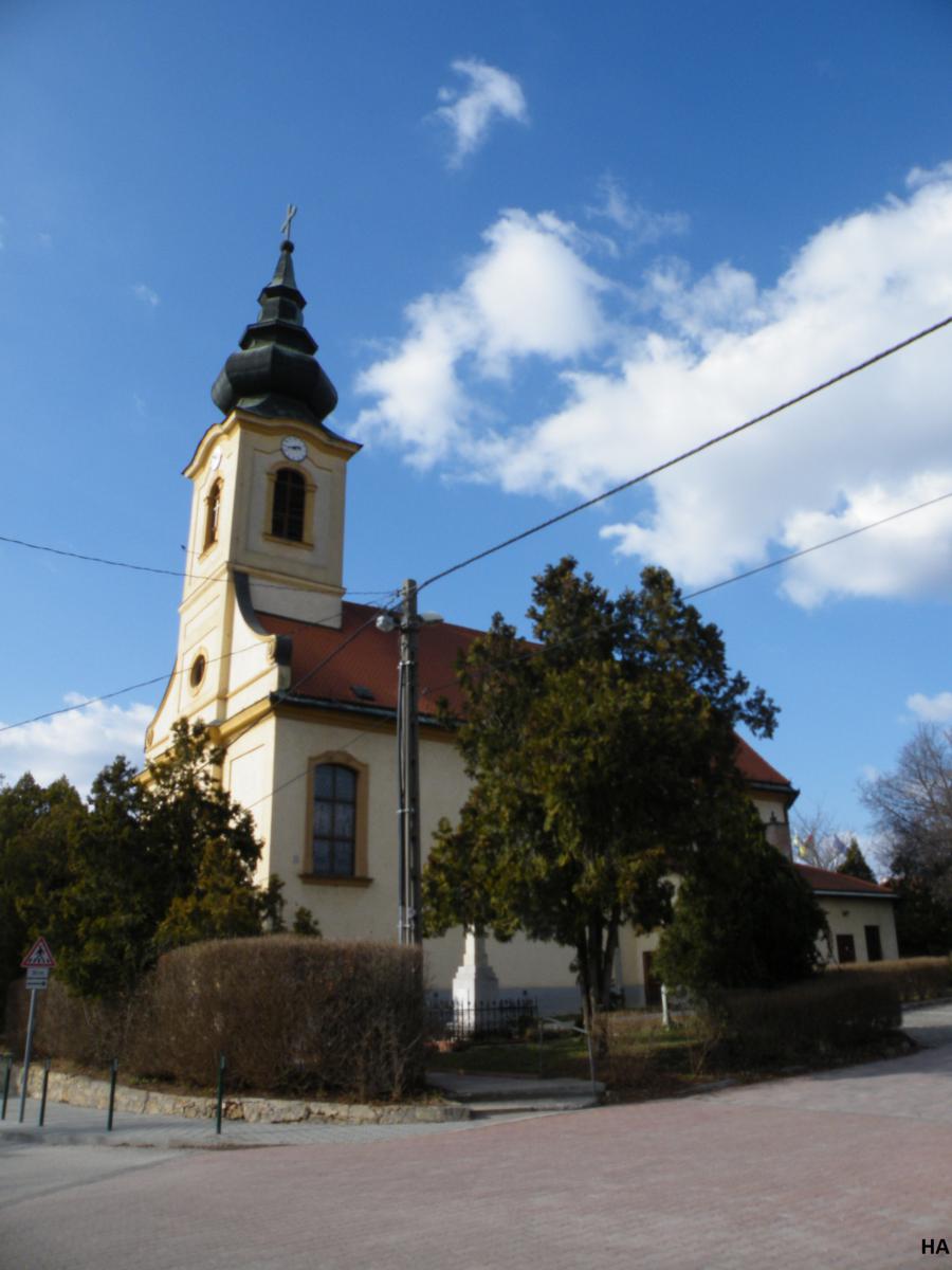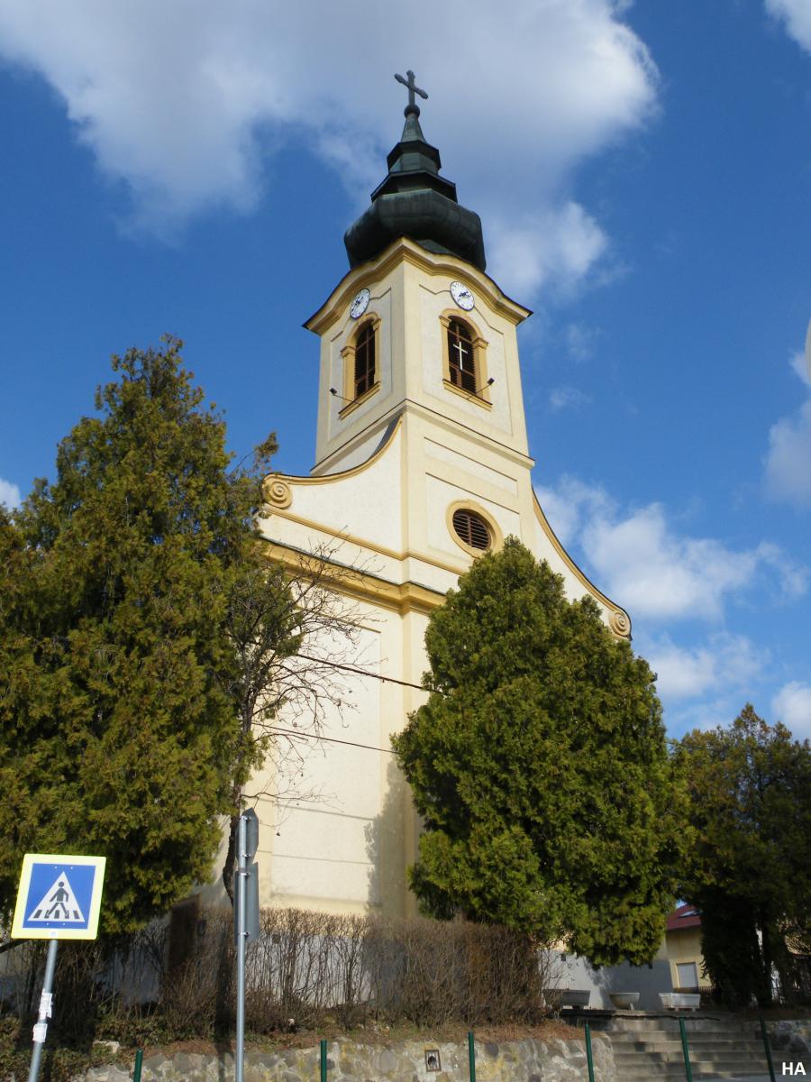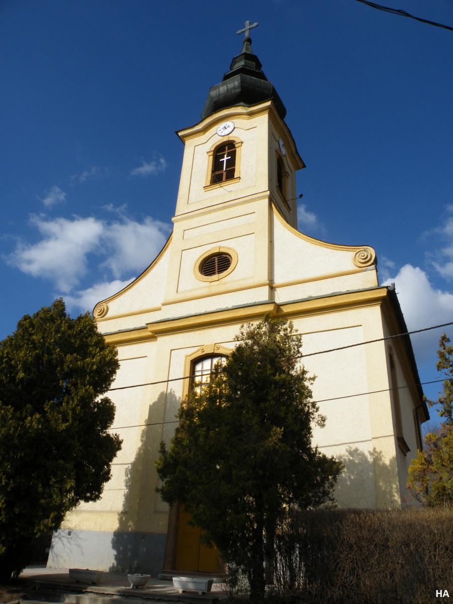 A templom 1771-73 között épült. A Grassalkovich Antal kezdeményezésére épült barokk templom egyhajós, homlokzati tornyos. Az egyszerű külső szépen tagolt, plasztikus kialakítású belsőt takar. Szentély falfestése XVIII. századi barokk alkotás.