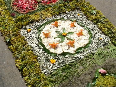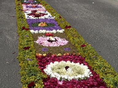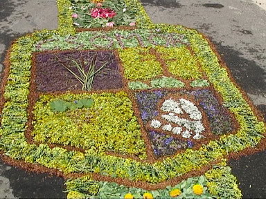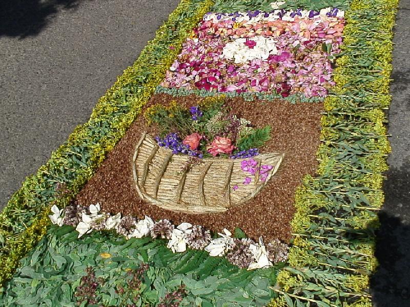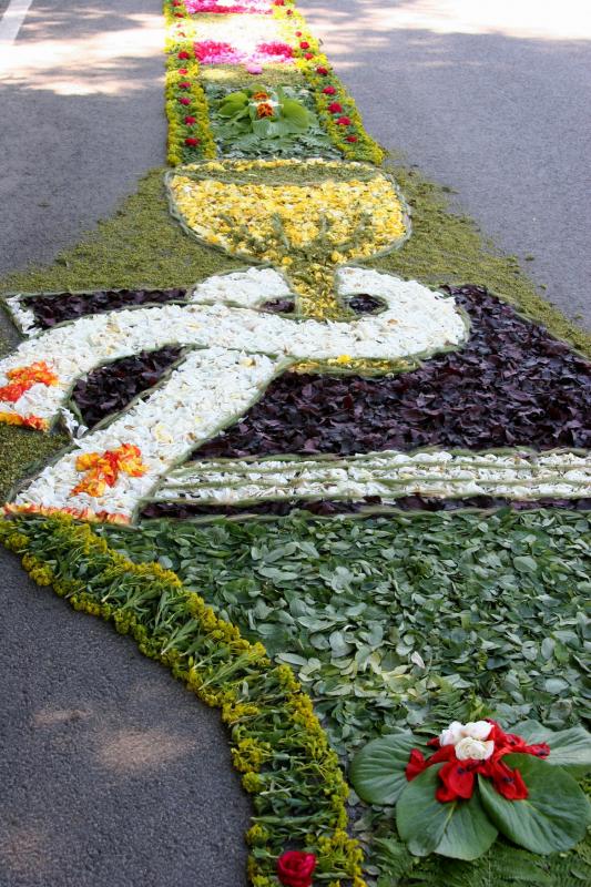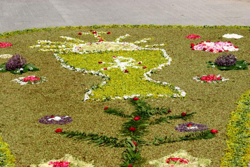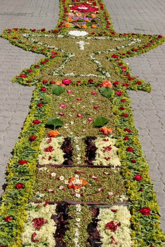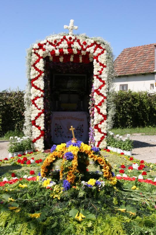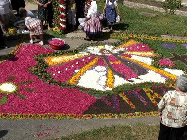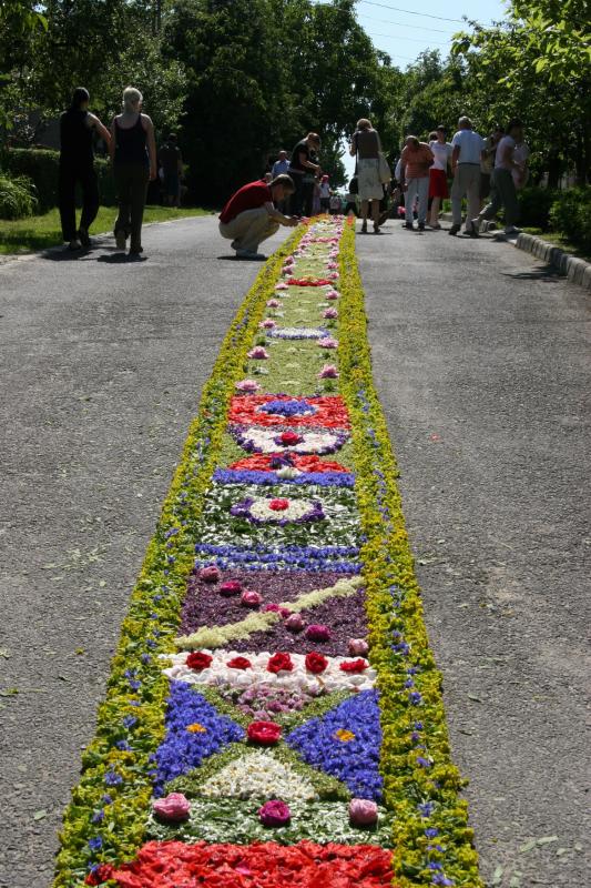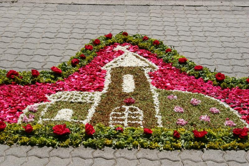 Az országban egyedülálló szokás a minden évben, a liturgia keretében megtartandó virágszőnyeges úrnapi körmenet.