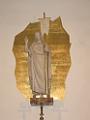 A templom előtt áll Árpádházi Szent Erzsébet mészkőszobra, melyet a volt erdélyi menekültek, halálának 100. évfordulóján, 1931-ben helyeztek el.